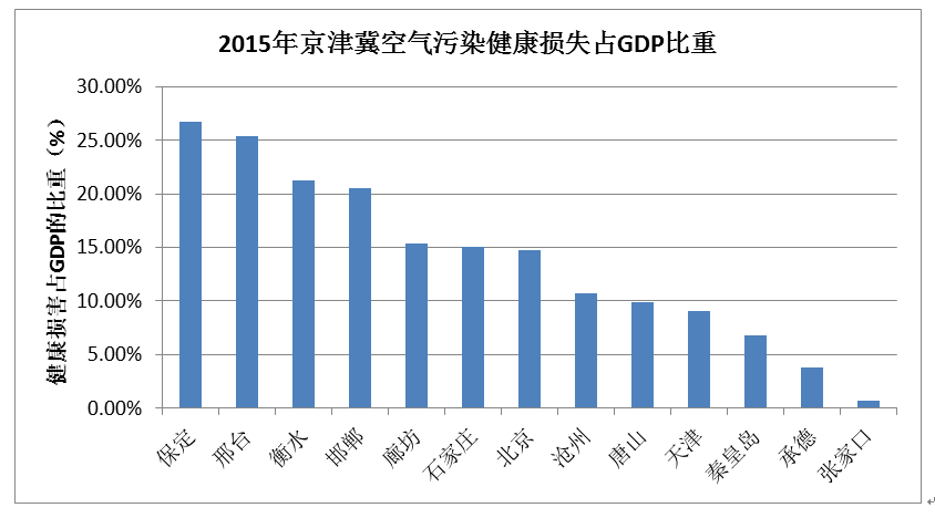 从健康损失占GDP的比重上看,保定、邢台等地空气污染所造成的相对经济影响则需要当地政府部门予以较高关注。